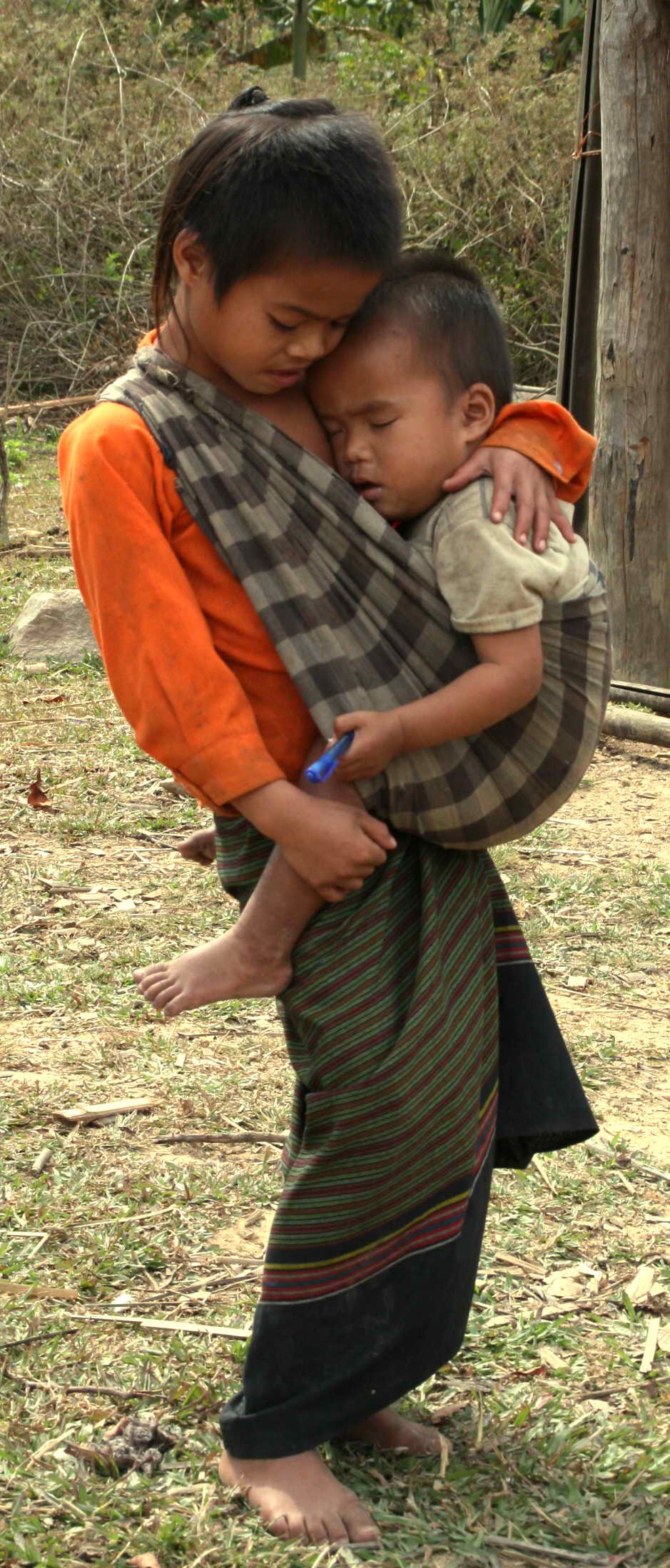 Når vi er på besøk i stammelandsbyene i fjellene ser vi alltid søsken passe på hverandre mens mor og far er ute på jobb. Det er et stort ansvar disse unge guttene og kanskje især jentene har, for noen ganger ser vi at de må passe på babyer som ikke kan være mange uker eller måneder gamle. Uansett er det flott å se den omsorgen som de har får lillesøstra eller lillebroren sin.