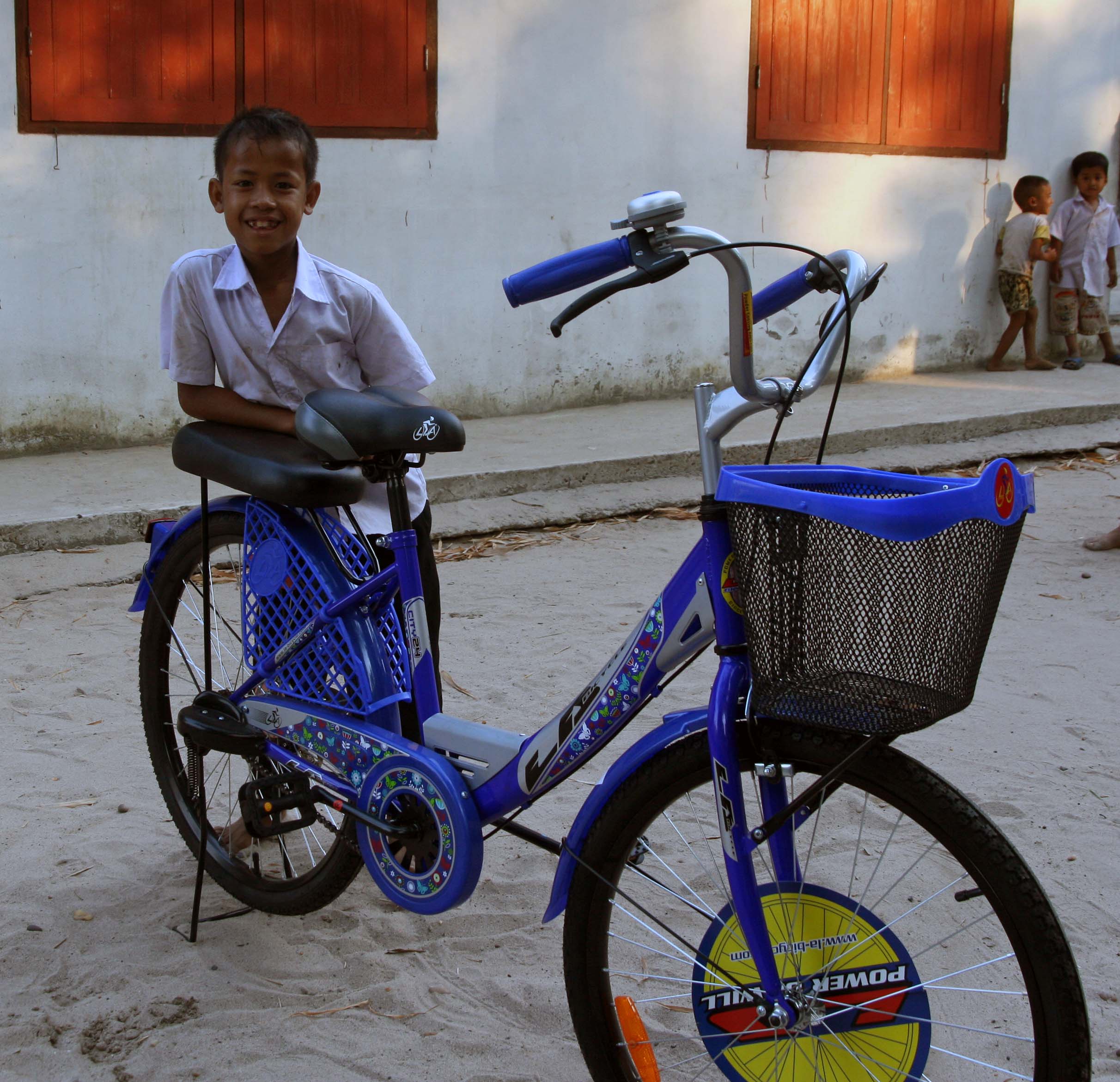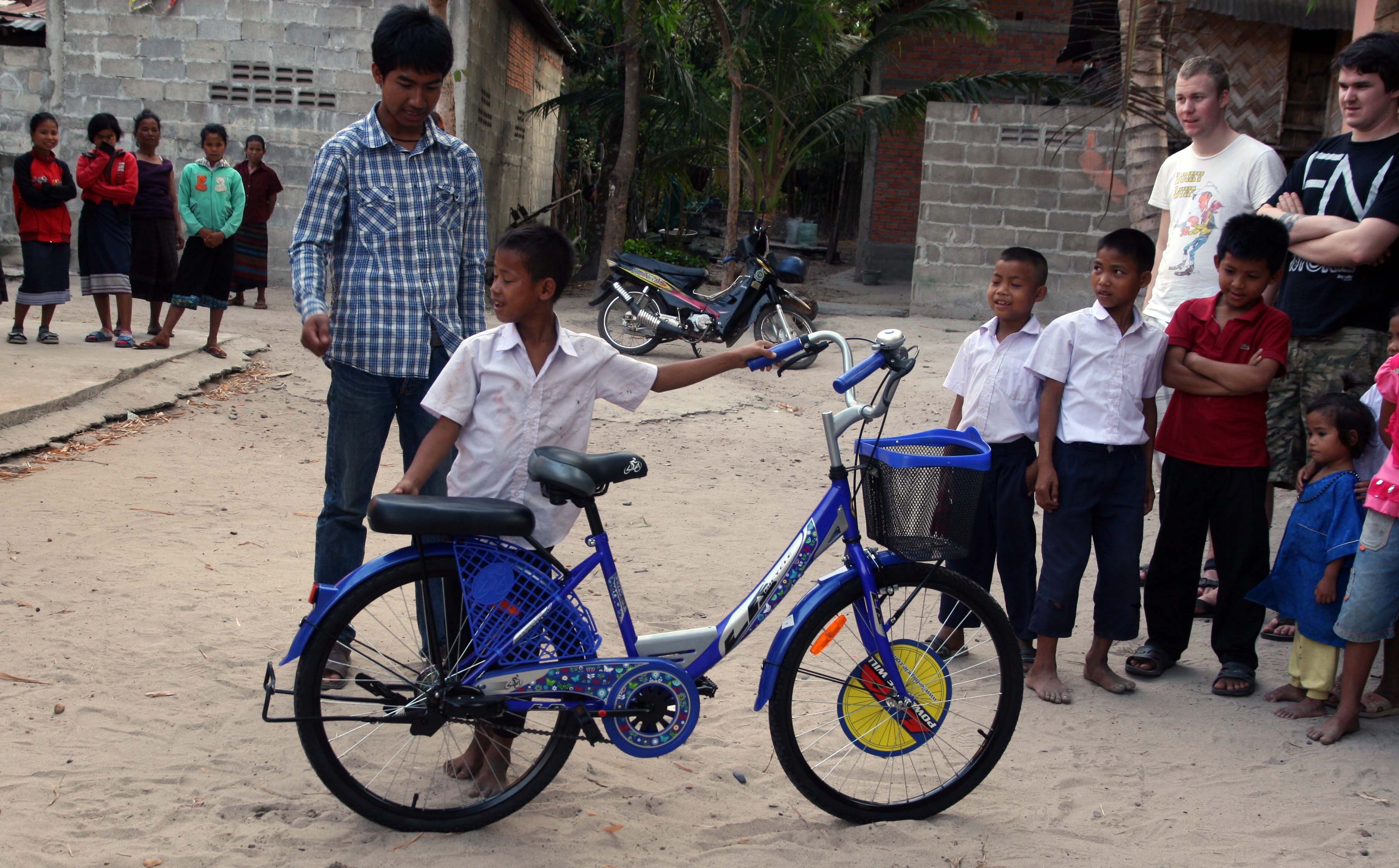 På denne turen hadde vi med oss et par fra Norge. De så at Gai trengte en ny sykkel og bestemte seg for å betale for en ny sykkel. Denne uken besøkte vi derfor Gai og familien på nytt for å levere sykkelen. Vi kom til familien litt før fire om ettermiddagen. Barneskolen i Laos varer til klokken fire, og siden Gai måtte gå hele veien hjem, kom han ikke før klokken var nesten fem. Og gjett om han ble glad da han fikk se sykkelen!