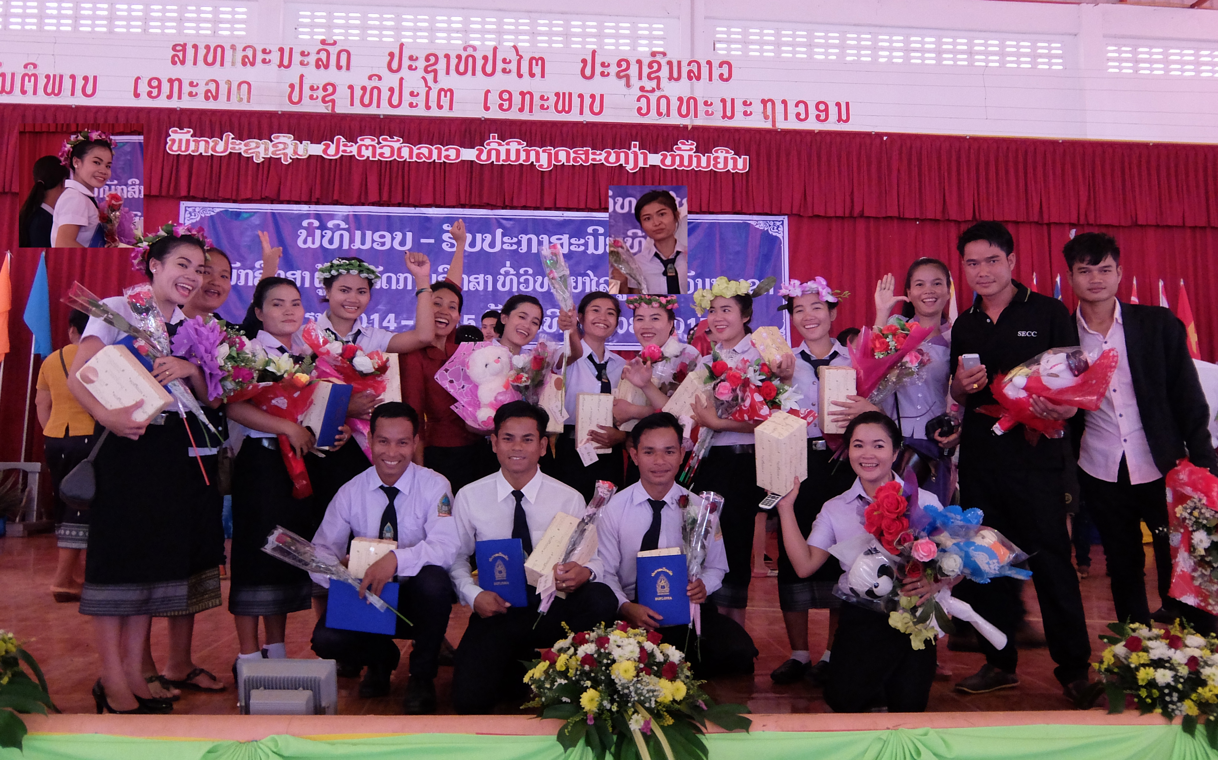 A Thousands people were participated at Teacher Training Collage , Kaison, Savannakhet for congratulation graduated of this year. all of their friends and families came and This day was a lot of traffic jam like a busy day. In this morning was very excited for them, some of them woke up 3 am. for preparing themselves before they gotten diploma. This year we had 12 students graduated. 10 are Primary teachers from tribal and 2 are Math and Kindergarten teachers from Kaison,savannakhet (small pictures) Well, Congratulations. We are proud with all of you. You guys had done well. You can do it. We are looking forward to see you again on Teacher seminar on 11-13 Sep 😀 ……Somchai……